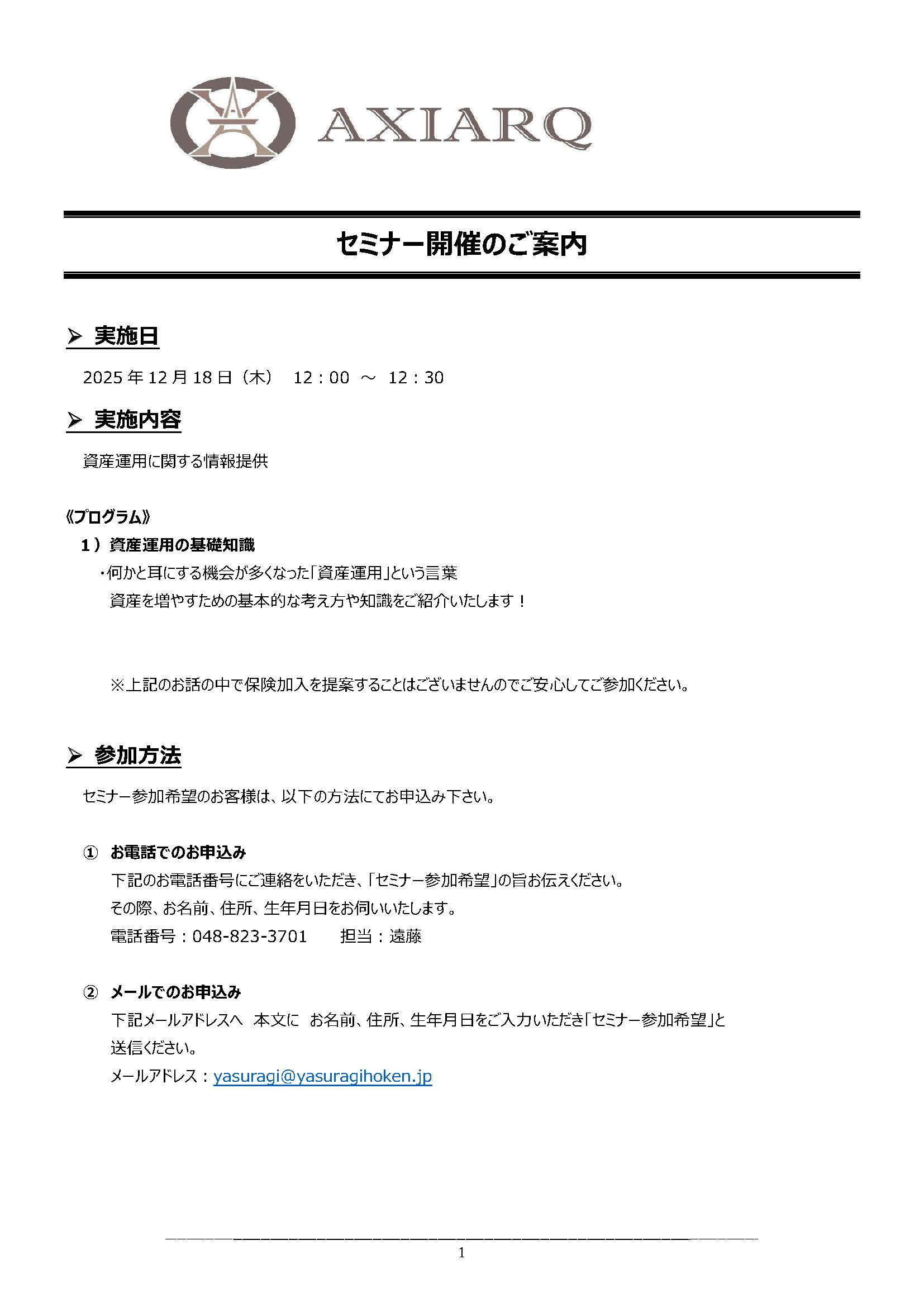 セミナー開催のお知らせです。是非ご参加下さい。
